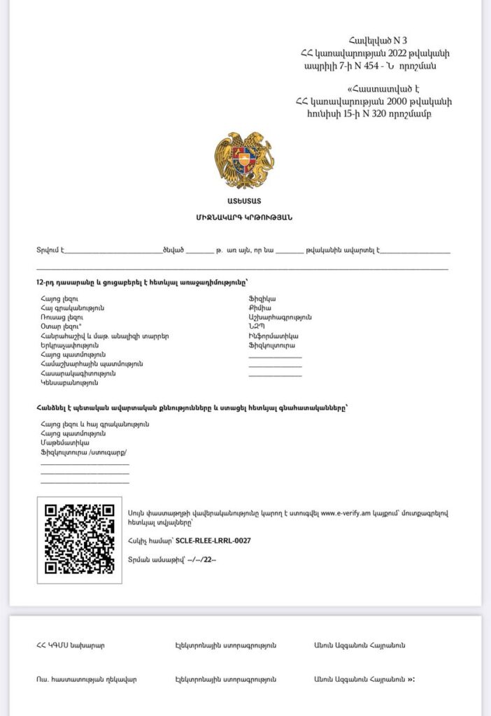 Ատեստատը կունենա այս տեսքը։