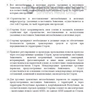 Մեկ այլ կետի համաձայն էլ՝ փաստաթղթում նշված բոլոր ավտոճանապարհներն ու երկաթուղիները պետք է շահագործվեն այն երկրների սուվերենության հիման վրա, որի տարածքում դրանք գտնվում են։ Այսինքն՝ ճանապարհների ապաշրջափակումը չի ենթադրում միջանցքային տրամաբանություն։