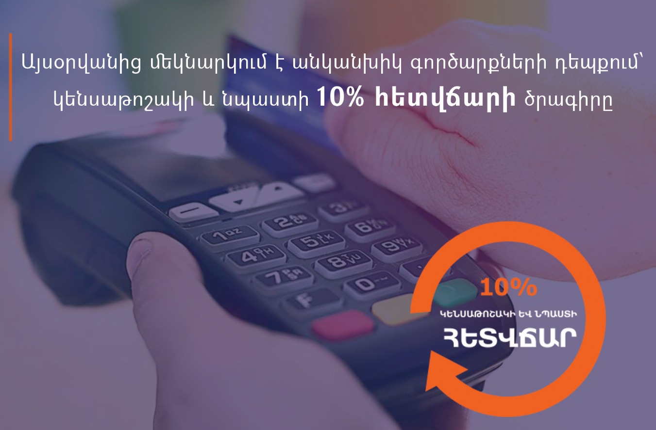 Այսօրվանից մեկնարկում է անկանխիկ գործարքների դեպքում՝ կենսաթոշակի և նպաստի 10% հետվճարի ծրագիրը։