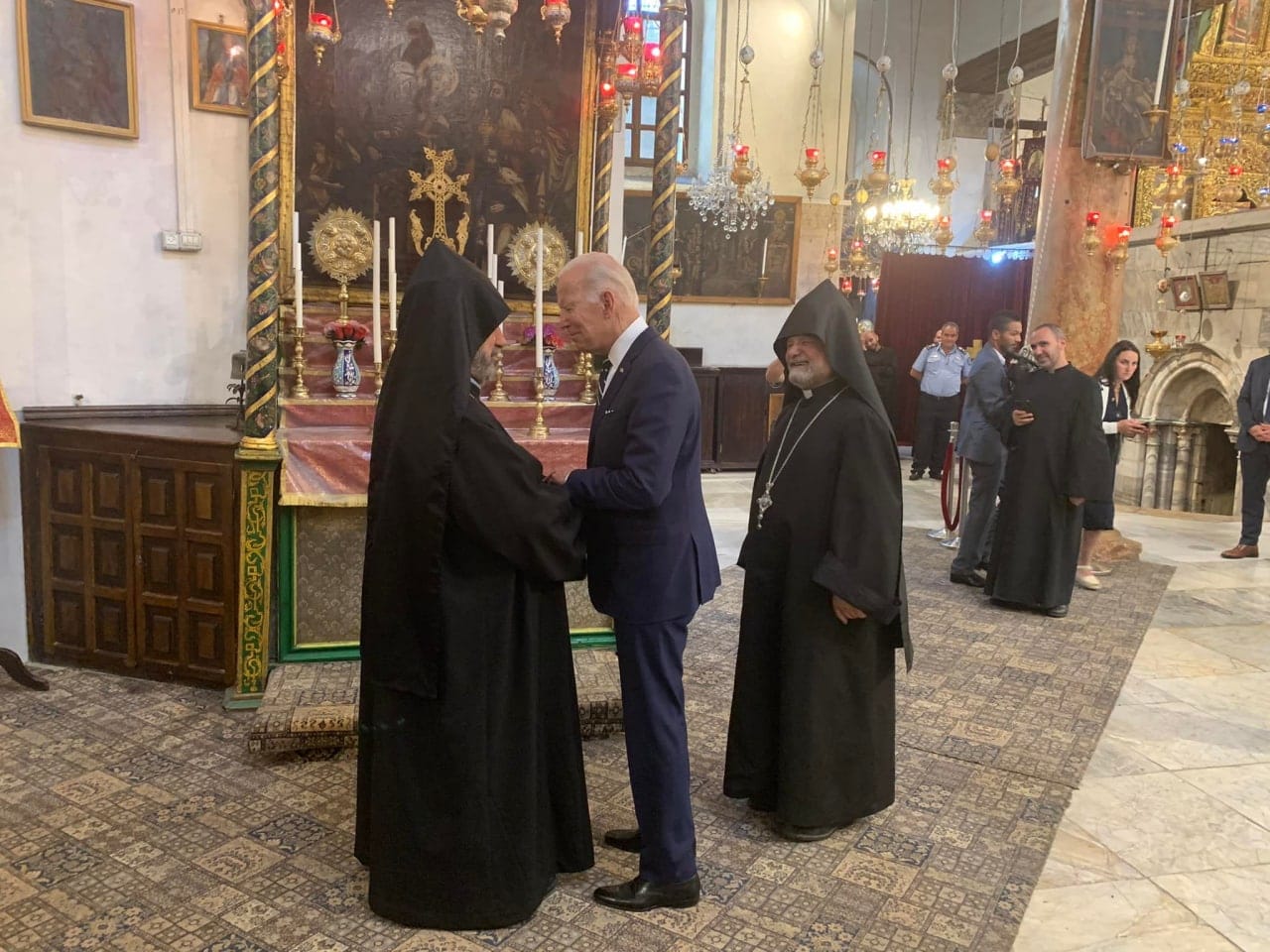 ԱՄՆ նախագահ Ջո Բայդենն այցելել է Բեթղեհեմի Սուրբ Ծննդյան հայկական եկեղեցի և հանդիպել Երուսաղեմի Հայոց պատրիարք Նուրխան արքեպիսկոպոս Մանուկյանի հետ,- հայտնում է Երուսաղեմի Հայոց պատրիարքարանի դիվանապետ Տեր Կորյուն քահանա Բաղդասարյանը։