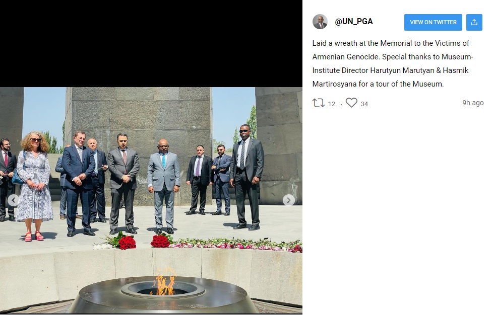 ԱՄՆ նախագահի կողմից «Genocide» բառի արտասանությունից հետո հերթական պատմաքաղաքական իրադարձությունը ՄԱԿ-ի Գլխավոր ասամբլեայի 76-րդ նստաշրջանի նախագահի այցելությունն էր Ծիծեռնակաբերդ։ Հայկական տիրույթի ոգևորությունը, սակայն, երկար չտևեց. շուտով հնչեց թուրքական արձագանքը, որին հաջորդեց Աբդուլա Շահիդի գրառման հեռացումը թվիթերյան պաշտոնական էջից։
