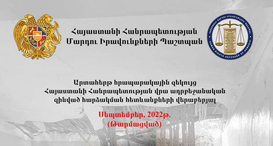 ՀՀ Մարդու իրավունքների պաշտպանը հրապարակել է Հայաստանի Հանրապետության վրա ադրբեջանական զինված հարձակման հետևանքների վերաբերյալ արտահերթ զեկույցի թարմացված տարբերակը։ Պատրաստվել է նաև հատուկ փակ զեկույց։