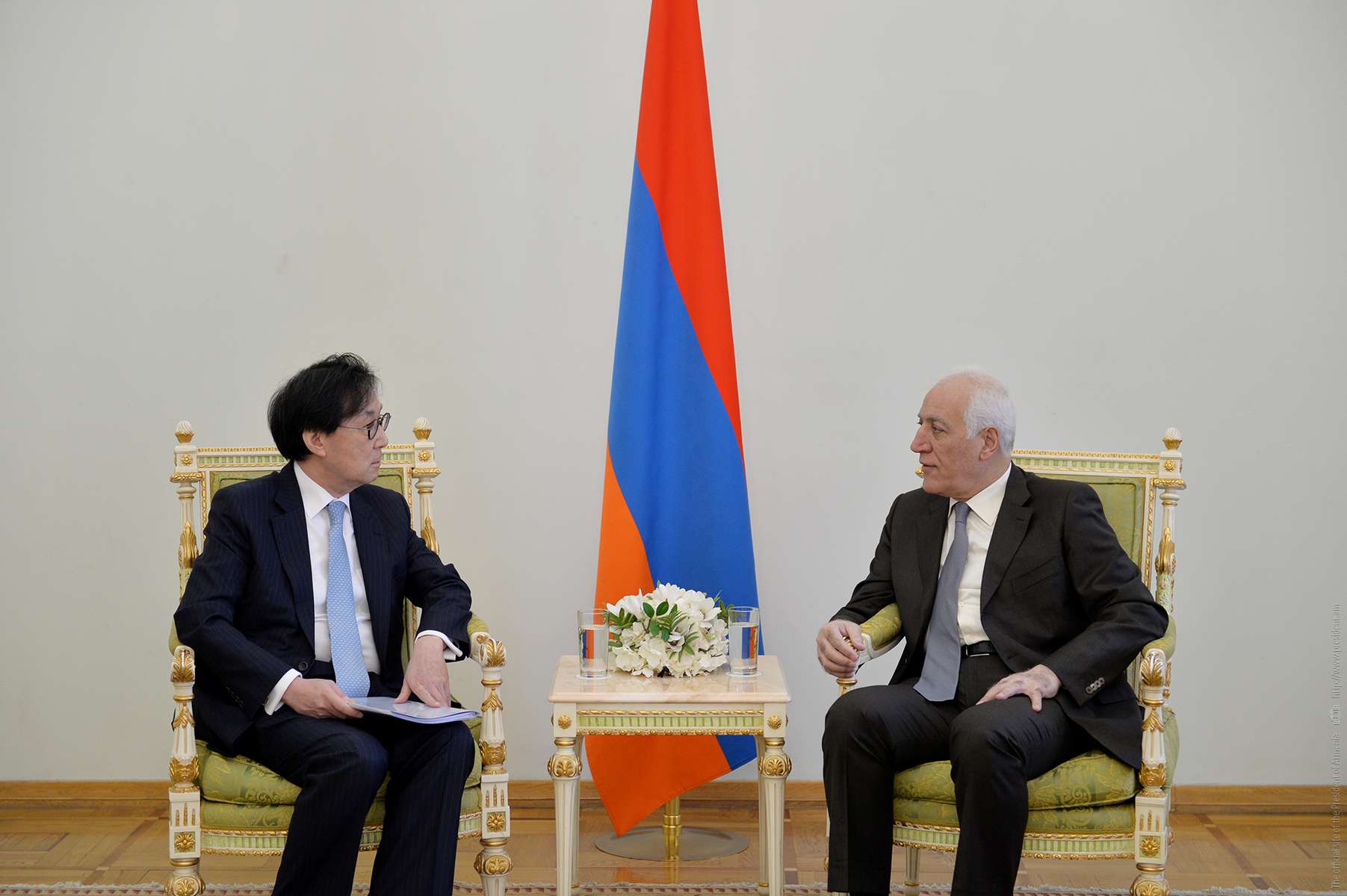 Հանրապետության նախագահ Վահագն Խաչատուրյանին իր հավատարմագրերն է հանձնել Հայաստանում Կորեայի Հանրապետության նորանշանակ արտակարգ և լիազոր դեսպան Ջան Հո-Ջինը (նստավայրը՝ Մոսկվա):