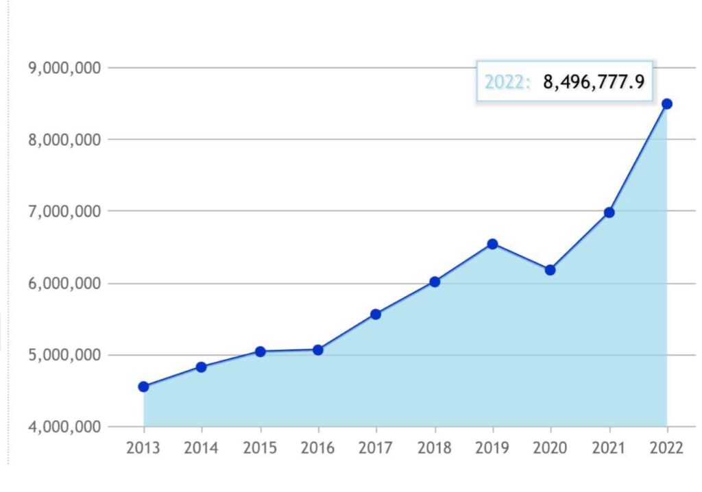 2013-ին մեր ՀՆԱ-ն եղել է 4,6 տրիլիոն դրամ, 2022-ի ավարտին՝ 8,5 տրիլիոն դրամ։