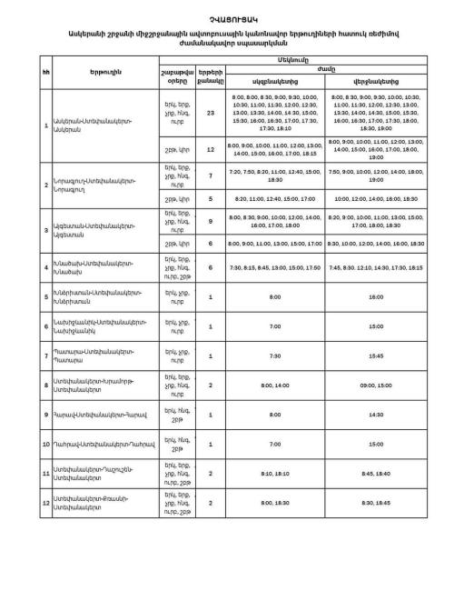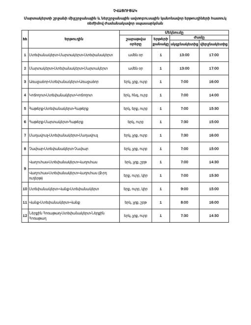 Այսուհետ երթուղիները կգործեն ներքոնշյալ աղյուսակներում ներկայացված հատուկ ռեժիմով։