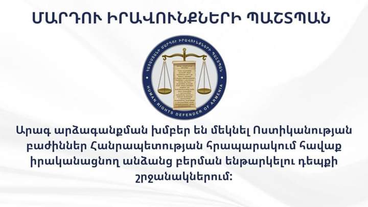 Մարդու իրավունքների պաշտպանի հանձնարարությամբ արագ արձագանքման խմբեր են մեկնել Ոստիկանության բաժիններ Հանրապետության հրապարակում հավաք իրականացնող անձանց բերման ենթարկելու դեպքի շրջանակներում: