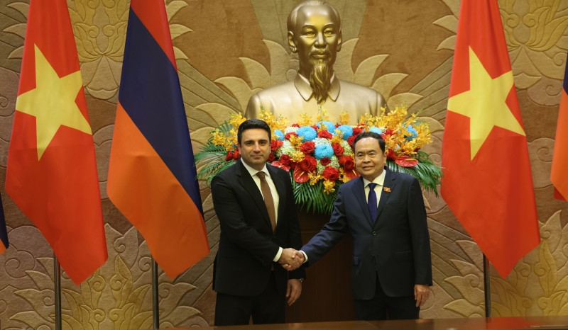 Պաշտոնական այցով Վիետնամի Սոցիալիստական Հանրապետությունում գտնվող ՀՀ ԱԺ նախագահ Ալեն Սիմոնյանի գլխավորած պատվիրակությունը նոյեմբերի 19-ին այցելել է Վիետնամի Ազգային ժողով և հանդիպել Վիետնամի ԱԺ նախագահ Չան Թան Մանի հետ:
