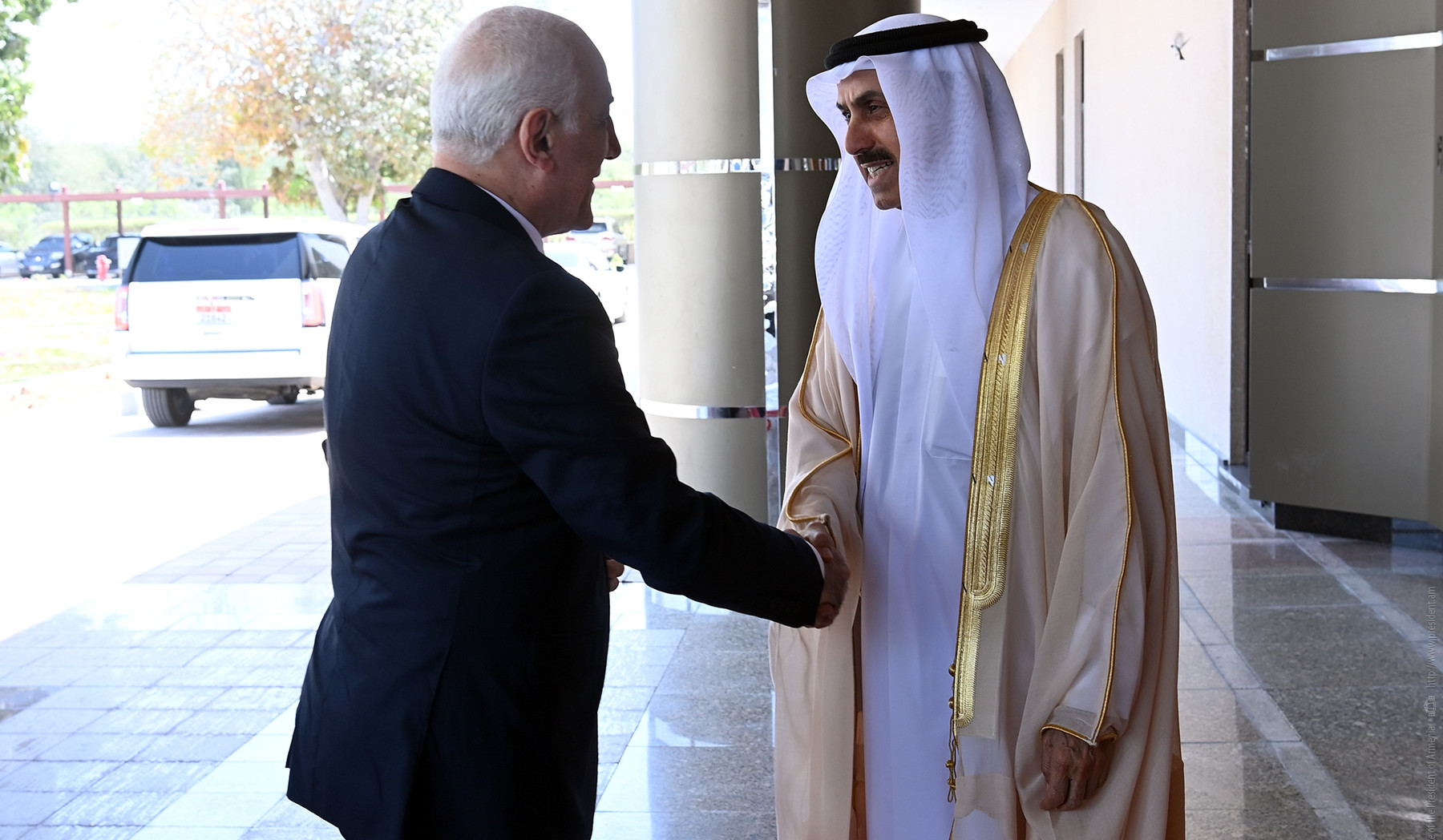 Միացյալ Արաբական Էմիրություններ կատարած աշխատանքային այցի շրջանակներում Հանրապետության նախագահ Վահագն Խաչատուրյանը հանդիպում է ունեցել ԱՄԷ Դաշնային Ազգային խորհրդի նախագահ Սաքր Ղոբաշի հետ: