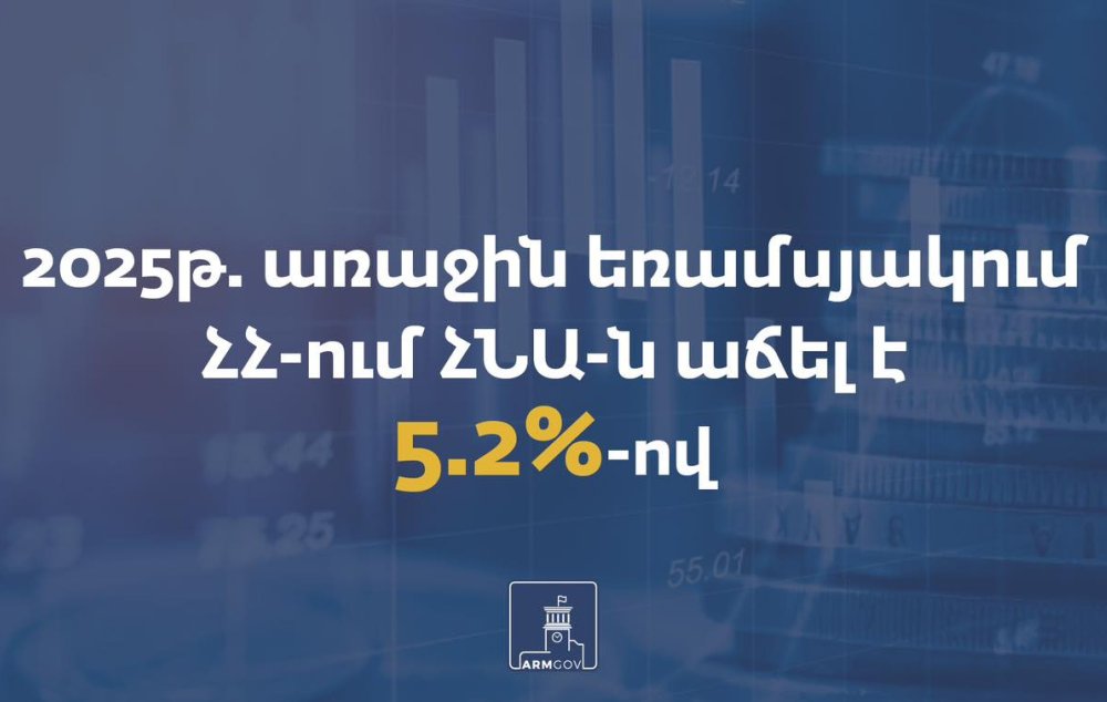 Նախորդ տարվա նույն ժամանակահատվածի համեմատ ՀՆԱ-ն աճել է 5.2%-ով։