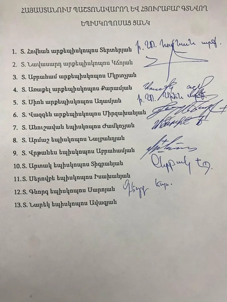 «Ինչպես ավելի վաղ ասում էի, Եկեղեցին ներսից ինքնամաքրման գործընթաց է սկսել։ Այս տասը եպիսկոպոսները սեփական հեղինակությամբ ստանձնում են Հայ Եկեղեցին, նրա նվիրապետությունն ու արժանապատվությունը փրկելու գործը։ Սա խորապես գնահատանքի արժանի քայլ է․ Եկեղեցին մաքրվում է սեփական խղճի դատաստանից։