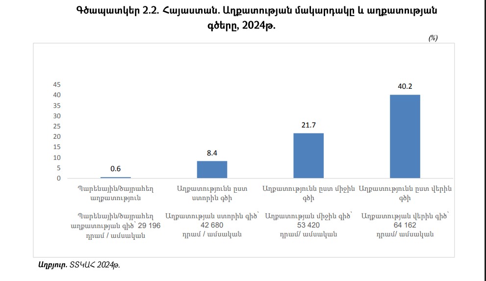 Ըստ «Աղքատության պատկերը Հայաստանում, 2024» զեկույցի՝ (հրապարակվել է 28․11․2025-ին) Հայաստանում