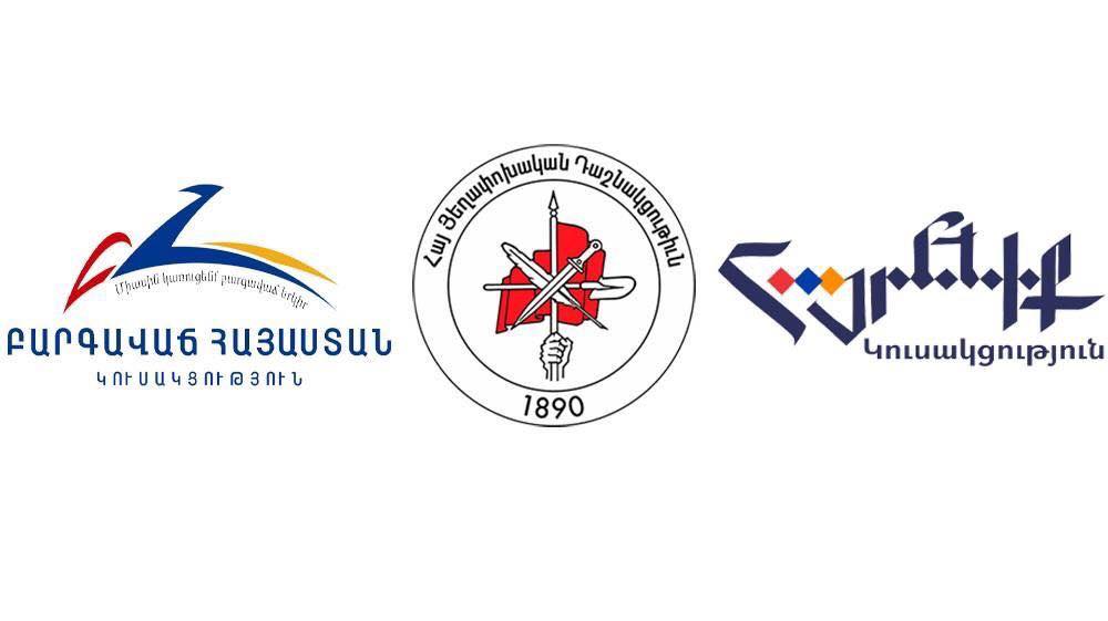 Միաժամանակ հայտնում ենք, որ «Բարգավաճ Հայաստան», «Հայ Յեղափոխական Դաշնակցություն» եւ «Հայրենիք» կուսակցությունները քննարկում են քաղաքական իշխանության կողմից հիշյալ առաջարկությունները մերժելու դեպքում արտակարգ դրության անհիմն սահմանափակումները վարչական դատարանի միջոցով վերացնելու հարցը, որի շուրջ աշխատանքային խումբը պատրաստվում է քննարկումներ սկսել տնտեսվարողների, շահագրգիռ այլ ուժերի եւ անձանց հետ։