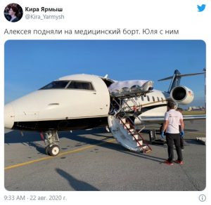 Թռիչքի ընթացքում նրա կողքին է եղել կինը՝ Յուլիան։ Նավալնիին պատրաստվում են տեղավորել Շարիտե համալսարանական հիվանդանոցում։