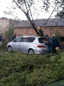 Այսօր Գեղարքունիքի մարզի Մարտունի քաղաքում ուժգին քամու և տեղացած կարկուտի հետևանքով ծառեր են տապալվել՝ ընկնելով կայանված մեքենաների վրա: Տեղացած կարկտահատիկների բարձրությունը առանձին հատվածներում գերազանցել է մի քանի սանտիմետրը: