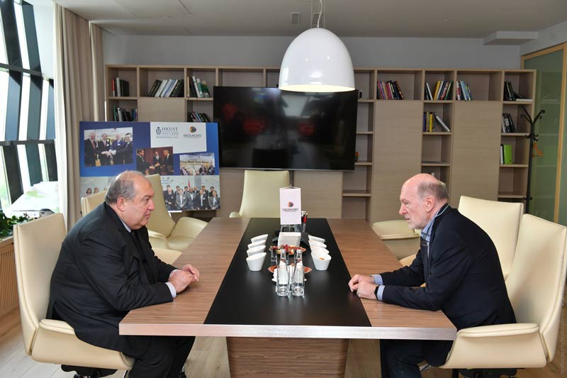 Աշխատանքային այցով Մոսկվայում գտնվող՝ Հանրապետության նախագահ Արմեն Սարգսյանն այսօր այցելել է Մոսկվայի «Սկոլկովո» կառավարման դպրոց, հանդիպել դպրոցի տնօրենների խորհրդի նախագահ Ալեքսանդր Վոլոշինի հետ: