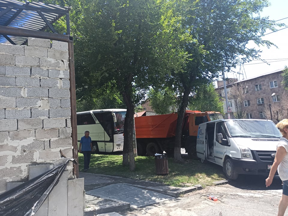 Եվ չնայած այն հանգամանքին, որ քաղաքապետարանի կողմից երեկ իրավապահ մարմինների աջակցությամբ ապամոնտաժվեցին մի քանի կառույցներ, իսկ այսօր արդեն վարչական շրջանի ղեկավար Հայկ Մհրյանը աշխատանքից ազատման դիմում ներկայացրեց, կառուցապատողները շինաշխատանքների կատարման վայրում տեղակայել են ավտոբուսներ, բեռնատարներ՝ փորձելով խոչընդոտել ապամոնտաժման աշխատանքները։