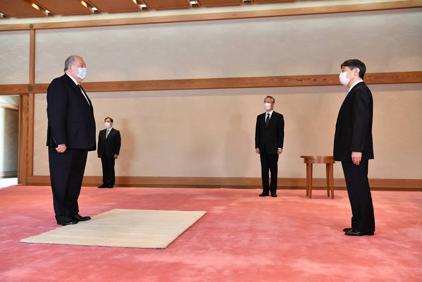 Հայաստանի Հանրապետության նախագահ Արմեն Սարգսյանը Ճապոնիայի կայսերական պալատում առանձնազրույց է ունեցել կայսր Նարուհիտոյի հետ: