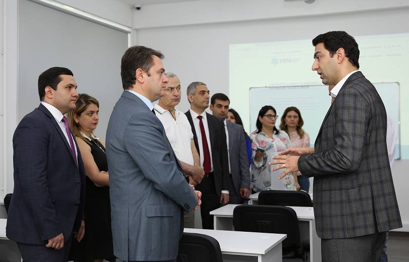 ՀՀ ԲՏԱ նախարարի պաշտոնակատարը ՀԱՊՀ ռեկտոր Գոռ Վարդանյանի, ՀԱՊՀ Խորհրդի նախագահ Հովիկ Մուսայելյանի և համալսարանի այլ ներկայացուցիչների ուղեկցությամբ շրջայց է իրականացրել ՀԱՊՀ-ում գործող «Խելացի լուծումներ» կենտրոնում, ծանոթացել կենտրոնի վերանորոգված և սարքավորումներով հագեցած լաբորատոր լսարաններին, կենտրոնի կողմից բարձր տեխնոլոգիական տարբեր ուղղություններով իրականացվող դասընթացներին և վերապատրաստման ծրագրերին։