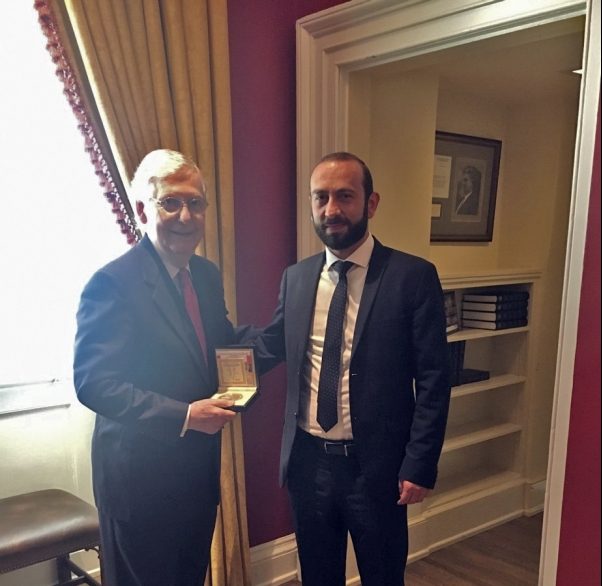 ՀՀ Ազգային ժողովի նախագահ Արարատ Միրզոյանը հուլիսի 16-ին Վաշինգտոնում հանդիպել է ԱՄՆ Սենատի մեծամասնության հանրապետական ղեկավար Միչ Մաքքոնելի հետ: ԱԺ խոսնակը գործընկերոջը ներկայացրել է Հայաստանում տեղի ունեցած հեղափոխությանը հաջորդող քաղաքական զարգացումները` ընդգծելով այս փուլում ԱՄՆ-ի կողմից մեր երկրին աջակցության կարեւորությունը: Կողմերը քննարկել են Միացյալ Նահանգների կողմից Հայաստանին տրամադրվող ֆինանսական աջակցության մեծացման հնարավորությունները, երկրի արտաքին քաղաքականությանն ու տարածաշրջանային կայունությանը, էներգետիկ անվտանգությանը եւ մի շարք այլ ոլորտներին վերաբերող հարցեր: