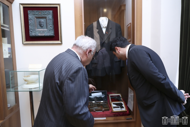 ԱԺ նախագահը թանգարանի տնօրեն Վահագն Մամյանի ուղեկցությամբ շրջել է հիմնական ցուցասրահում՝ ծանոթանալով Դեմիրճյան պետական-քաղաքական գործչի կյանքին ու գործունեությանը վերաբերող ցուցանմուշներին:
