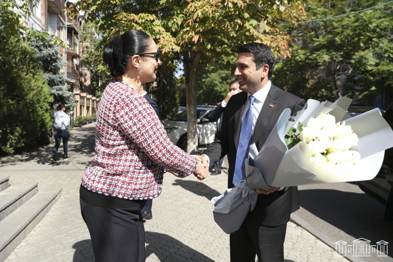 ԱԺ նախագահը գրառում է թողել հուշամատյանում ու առանձնազրույց է ունեցել Կարեն Դեմիրճյանի այրու՝ Ռիմա Դեմիրճյանի հետ: