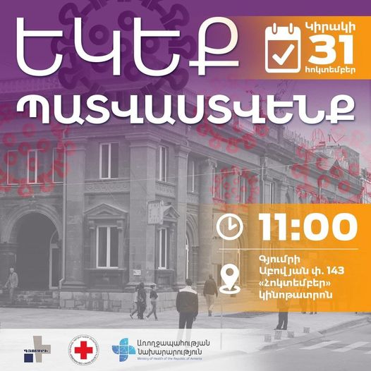 Հոկտեմբերի 31-ին, ժամը 11:00-ին, Հոկտեմբեր կինոթատրոնի շենքում (Աբովյան փող., 143) տեղի կունենա «Պատվաստումների օր Գյումրիում» խորագրով միջոցառումը՝ ՀՀ Առողջապահության նախարարության նախաձեռնությամբ, Հայկական Կարմիր խաչի ընկերության և Գյումրի ԲԿ-ի հետ համագործակցությամբ: