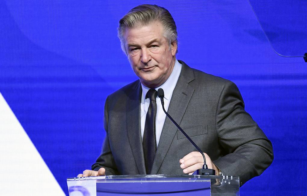 Alec Baldwin performs emcee duties at the Robert F. Kennedy Human Rights Ripple of Hope Award Gala at New York Hilton Midtown on Thursday, Dec. 9, 2021, in New York. (Photo by Evan Agostini/Invision/AP)
