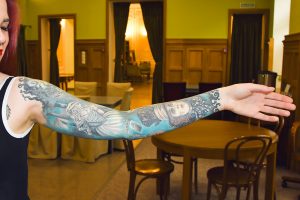 В детстве лето я проводил на даче и был там окружен огромной библиотекой. Каждая прочитанная книга оставляла свой след. В основном из-за того, что многие произведения были мне не по возрасту. Моей любимой компанией всегда были Артур Конан Дойл, Агата Кристи и Стивен Кинг. Они рассказывали истории, которые при дачном освещении казались еще ярче. Я решил сказать им спасибо с помощью татуировки.