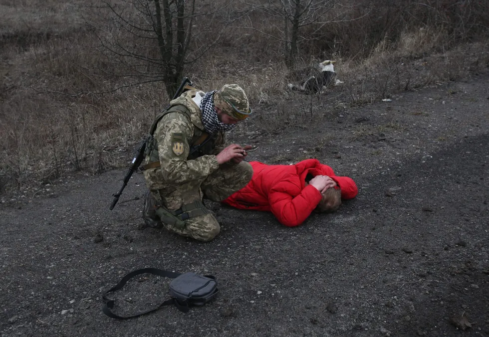 Ուկրաինական բանակի դիրքերից ոչ հեռու տղամարդու ստուգում, ով իրեն «կասկածելի» էր պահել. Ուկրաինական կողմը բազմիցս հայտնել է բազմաթիվ ռուս դիվերսանտների մասին, որոնք ներկայացել են որպես ուկրաինացի։