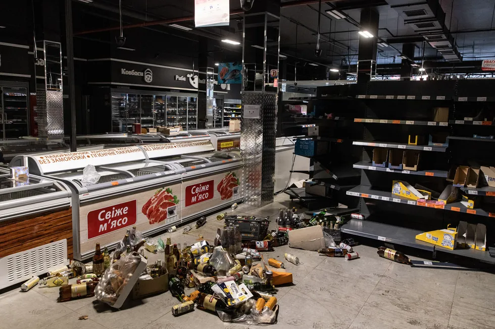 Պատերազմական գոտում հայտնված քաղաքների բնակիչները սննդի եւ դեղորայքի պակաս ունեն։ Նկարում Իրպենի խանութն է: