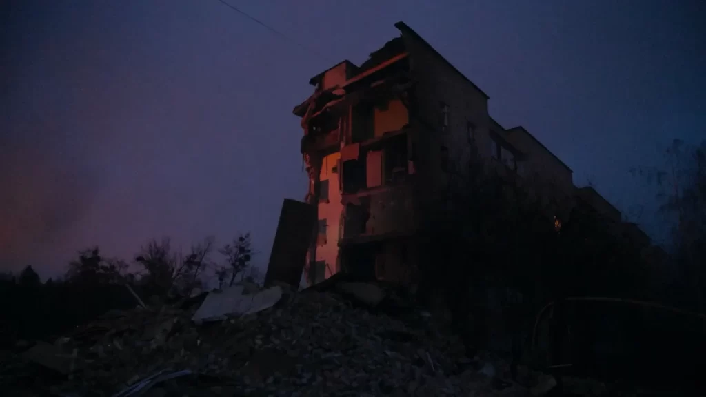 ՝ Բորոդյանկա գյուղը Կիեւի մարզում, հրետանային ռմբակոծությունից հետո։
