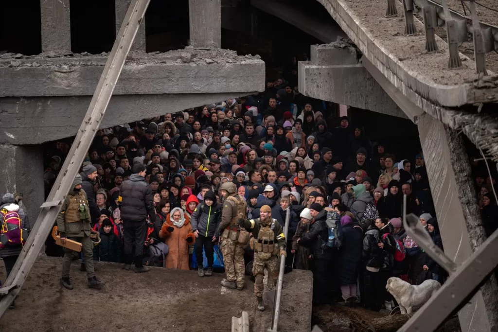 Ուկրաինացիները կուտակվել են քանդված կամրջի տակ՝ փորձելով դուրս գալ Իրպեն քաղաքից Կիևի մարզի Իրպեն գետի վրայով։