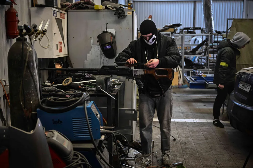Ուկրաինացին ավտոտեխսպասարկման կետում ավտոմատ է նորոգում. Նախկինում զենքը պատկանել է ռուսական բանակին